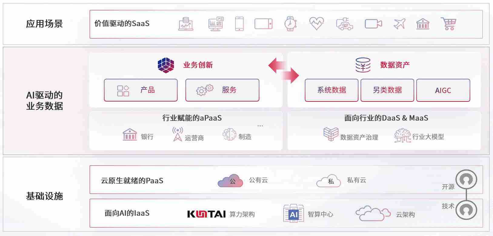 数字时代,,围绕企业数字化转型的关键要素,,长征娱乐数码开创性的提出数云融合战略和技术体系框架,,,着力在云原生、、数字原生、、、AI原生和信创产业上架构产品和服务能力,,为处在不同数字化转型阶段的快消零售、、、、汽车、、、金融、、、医疗、、、、政企、、教育、、、、运营商等行业客户提供泛在的敏捷IT能力和融合的数据驱动能力,,,构建跨界融合创新的数字业务场景和新业务模式,,,助力企业级客户建立面向未来的核心能力和竞争优势,,,全面推动社会的数字化、、、智能化转型升级。。。